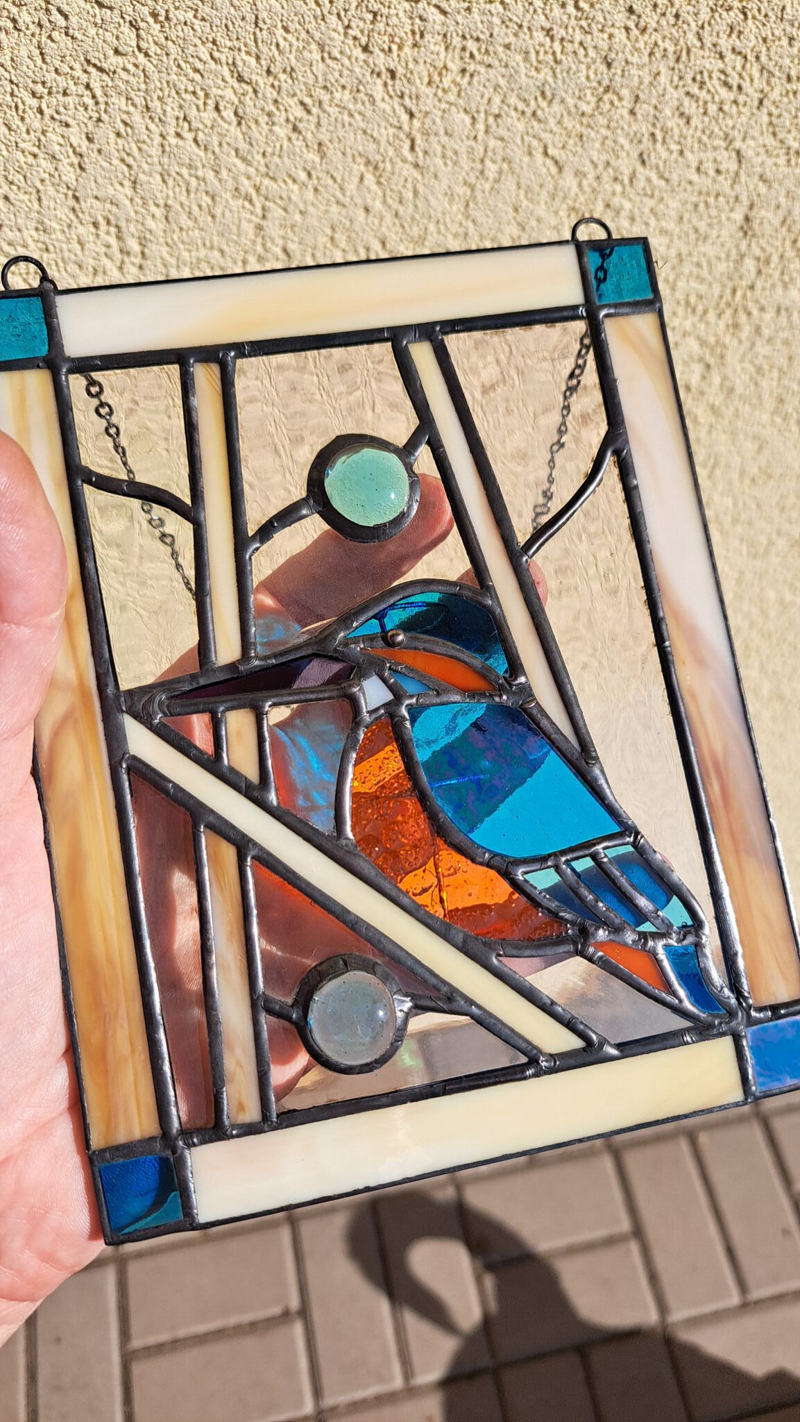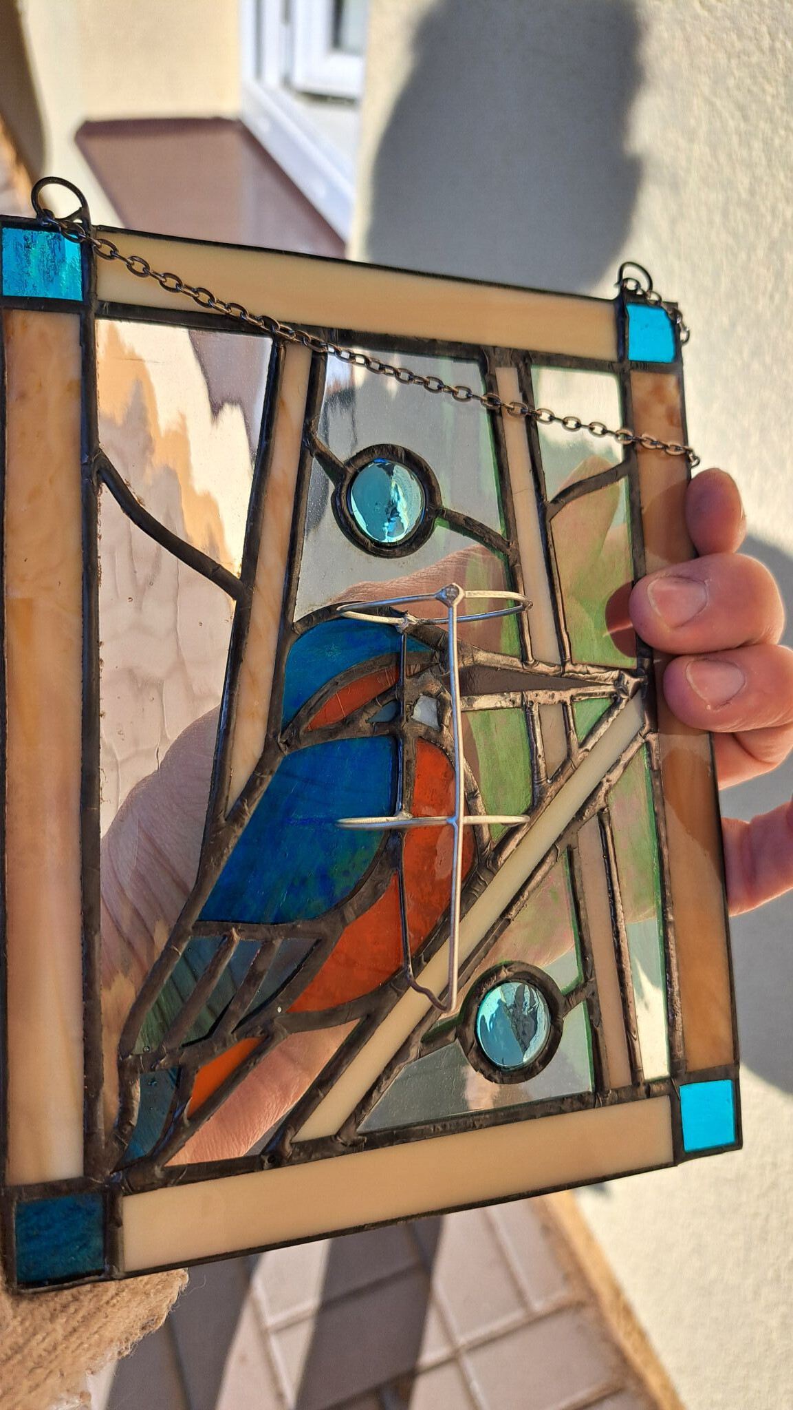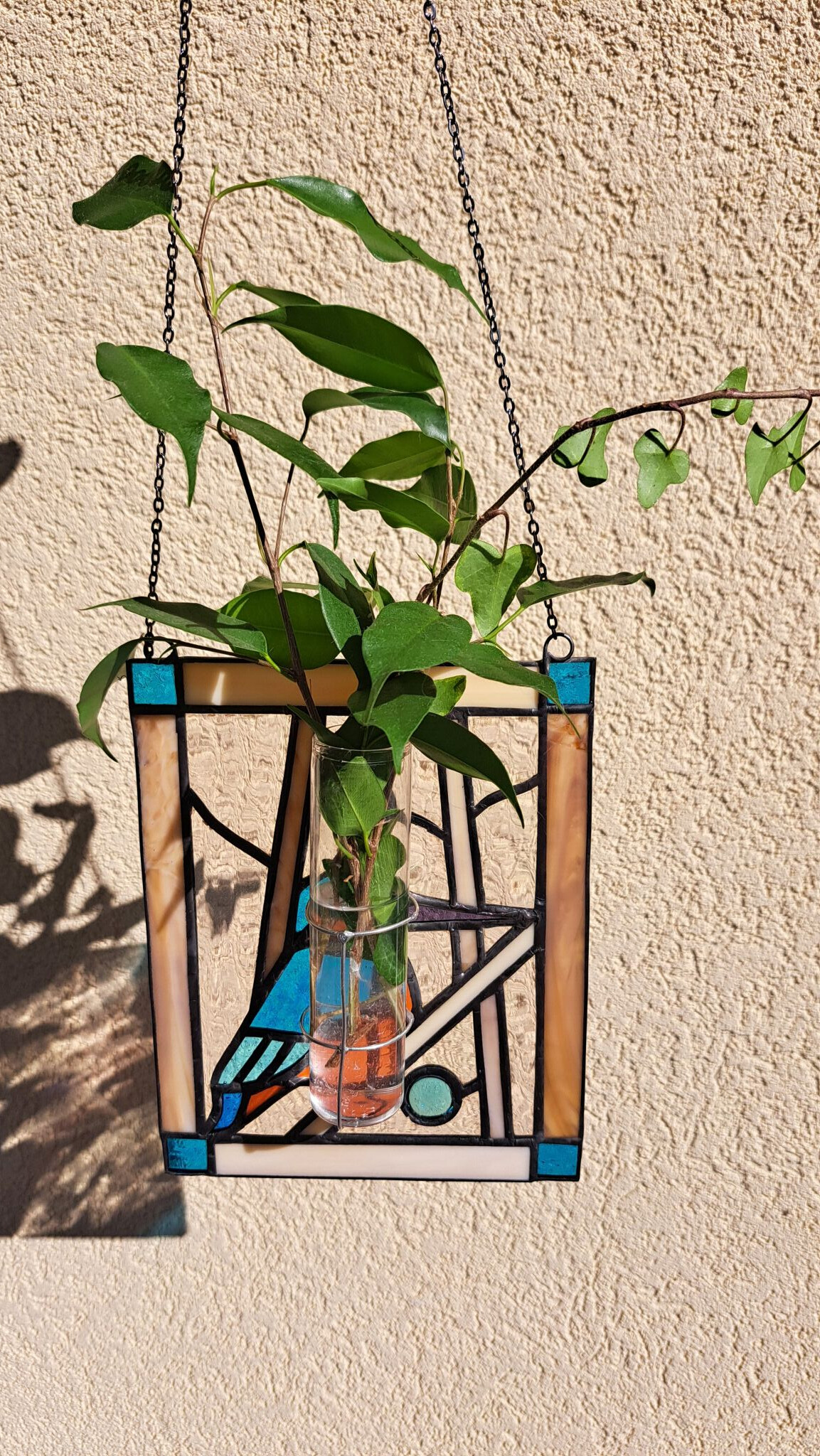 Ledňáček je fascinující barevný poklad naší přírody a kousek této přírody může viset na vašem okně. Malá vitráž je z opačné strany opatřena skleněnou zkumavkou, do které můžete vložit rostlinku, např. k zakořenění.