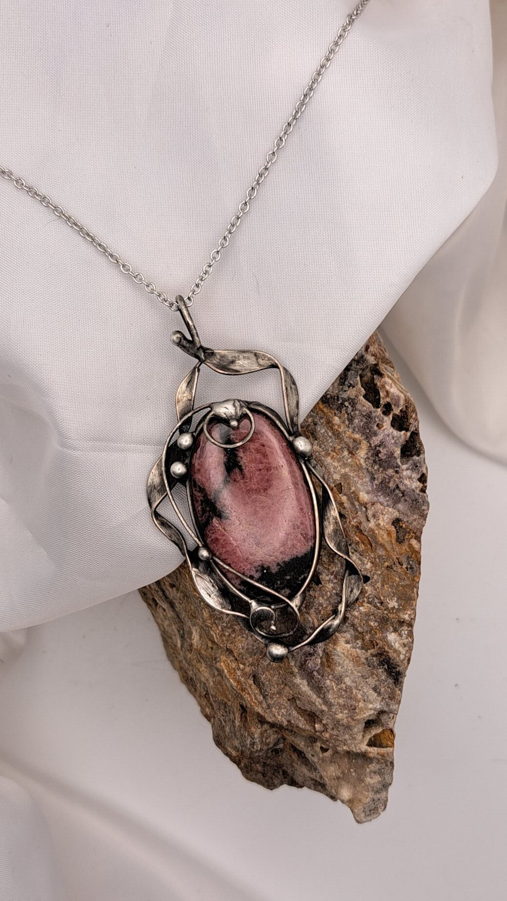 Přívěsek z rodonitu Cena 740.00 Kč Skladem 1 ks K odeslání Ihned Skladové číslo 47 Sdílet ks Výrobce: Kybicová Výška: 7 cm Umístění E-shop > Cínované šperky
