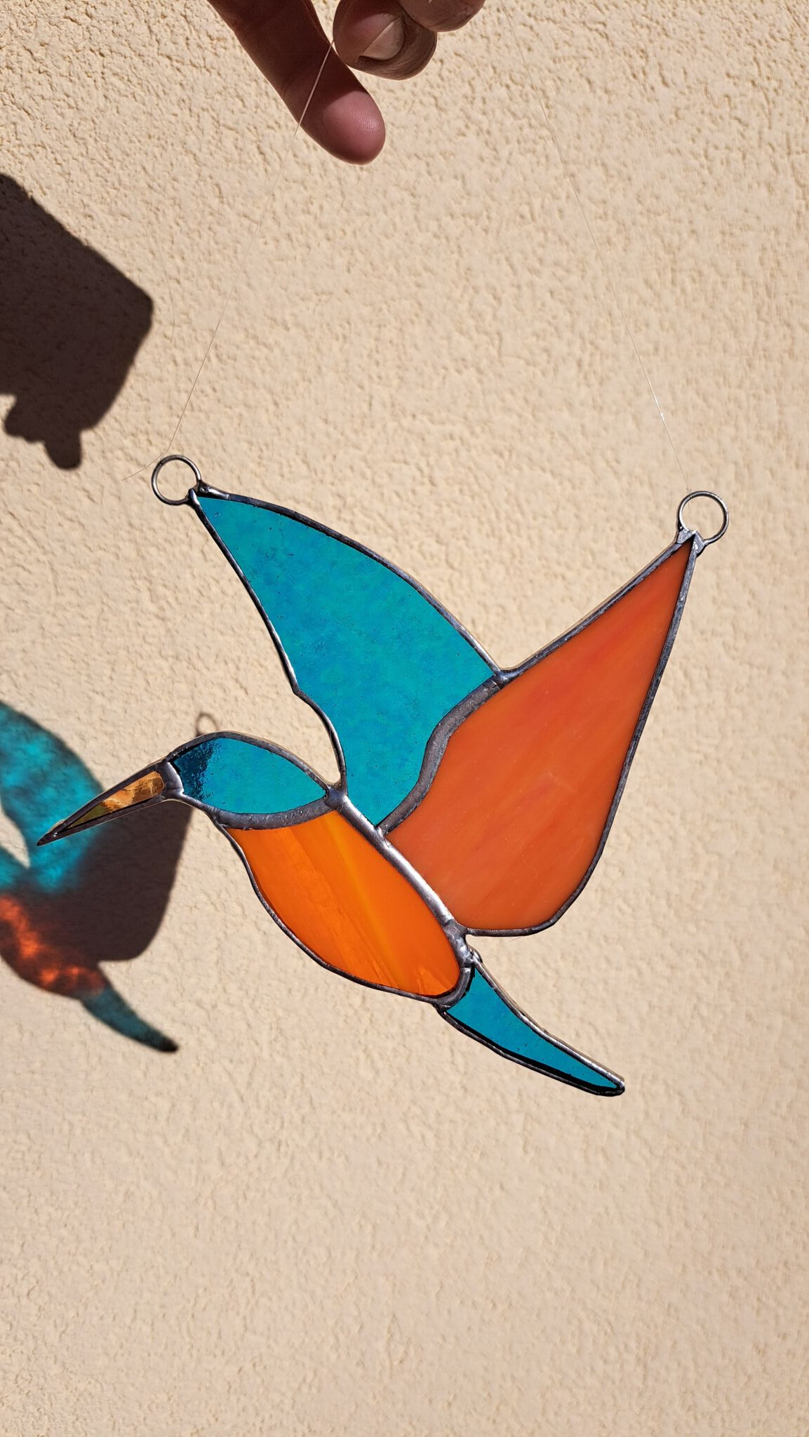 Ledňáček z krásně modře tyrkysového skla s duhovými odlesky.
