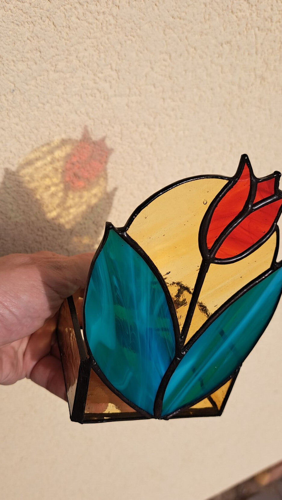Svícen z průsvitného skla s motivem tulipánu je takovým jarním povzbuzením, třeba na vaší terase.