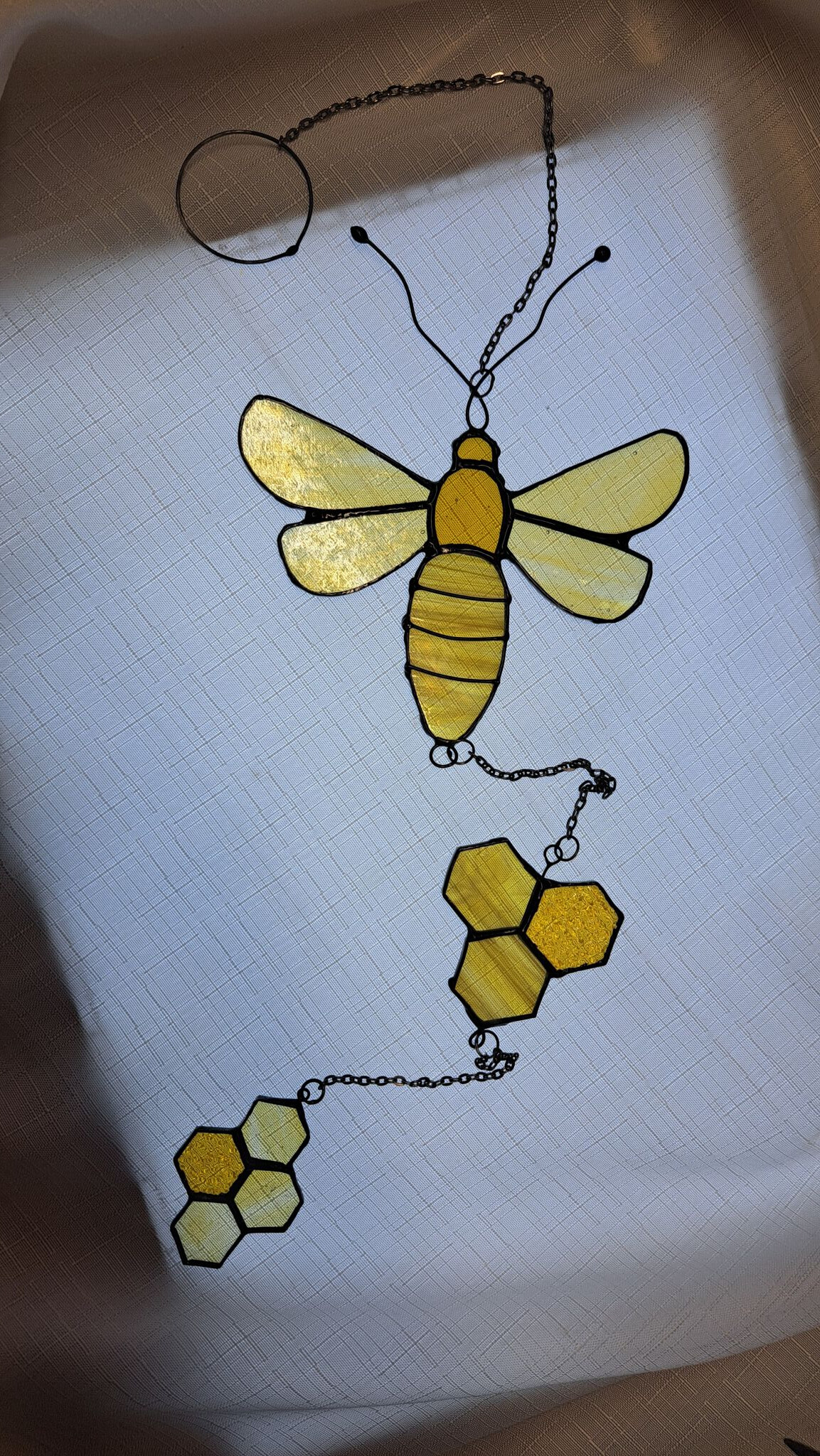 Tento dlouhý závěs 74cm se skládá z včelky Máni cca12cm a 2x kousek plástve, připraveno do okna či na strop.