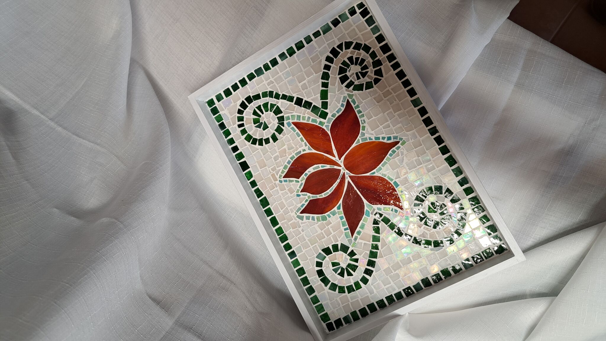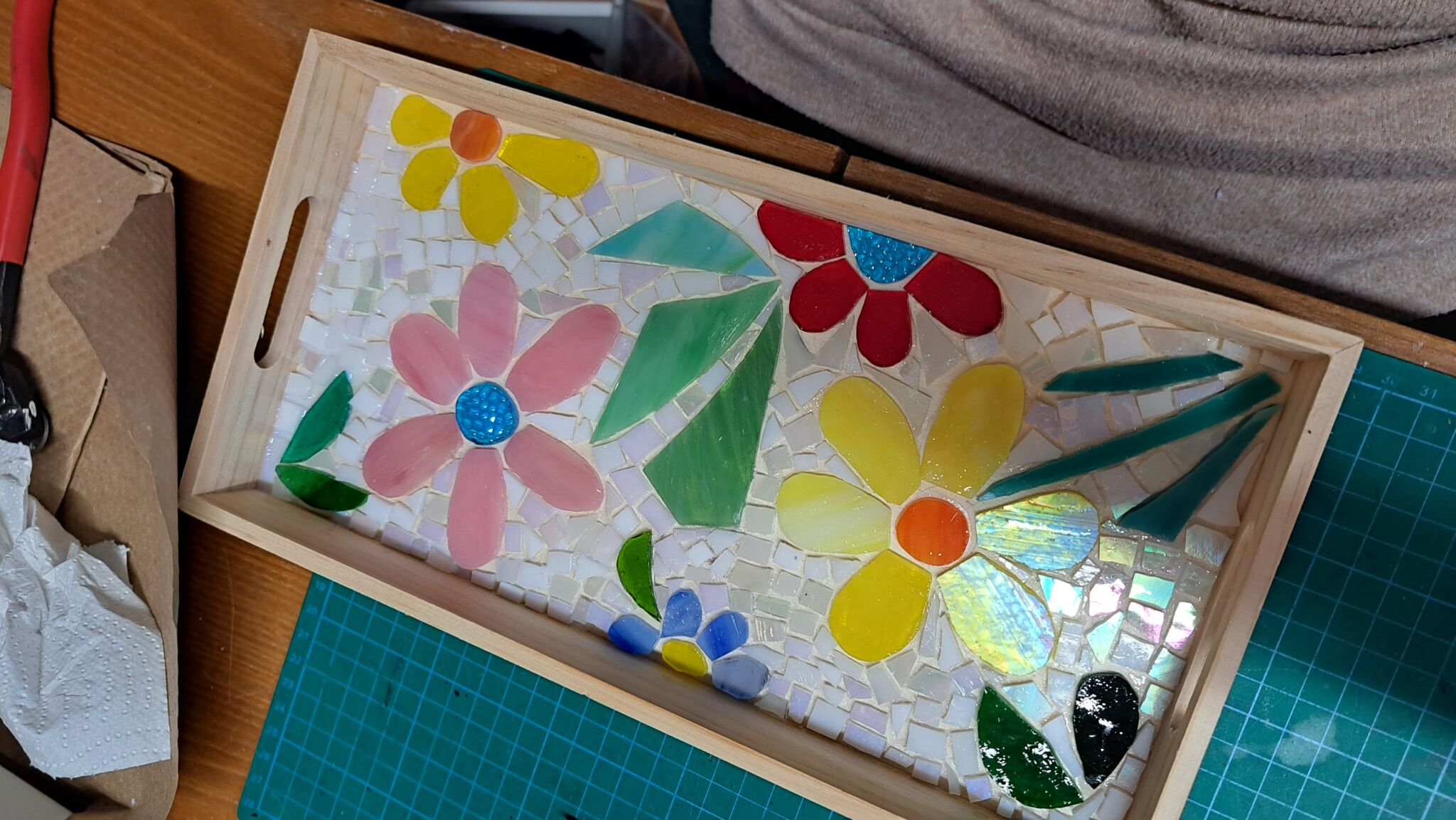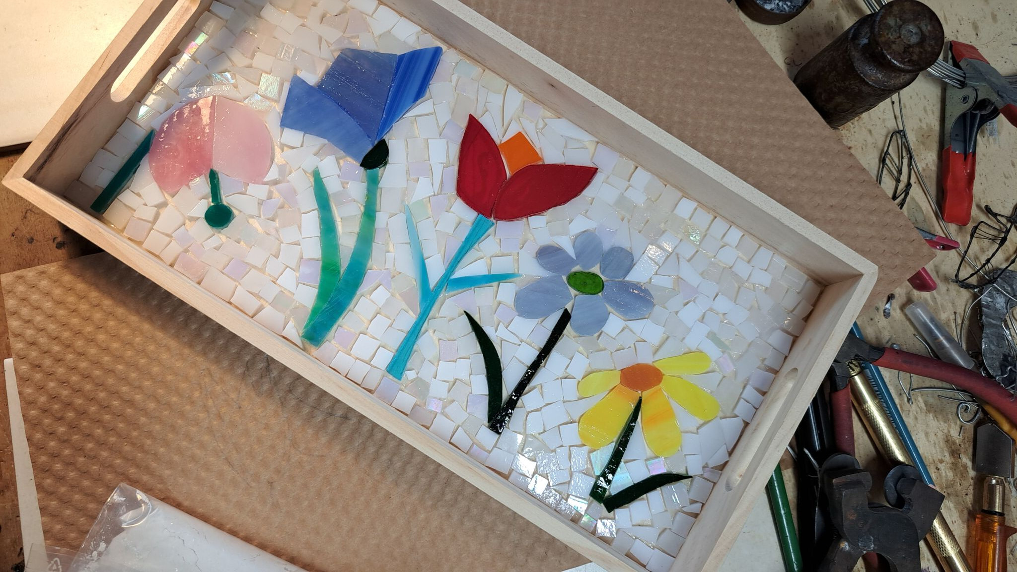 Mozaika je skvělá relaxace, pomalé skládání dílů a příjemná atmosféra v ateliéru, Vám poskytne 6hodin odpočinku a soustředění se na barevné kousky skla s očekáváním fascinujícího výsledku. K mozaice používáme kousky pravých vitrážových skel všech možných barev, jako podložku si můžete zvolit různé rámečky, podnosy, sklenice, kachle apod. Vzhledem k technologii si svůj projekt dokončíte druhý den doma, závěrečným spárováním, ke kterému si vyfasujete spárovačku.